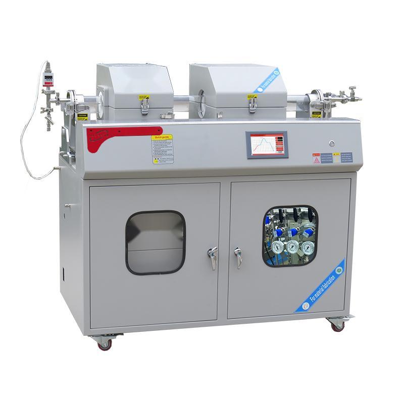 产品特点 | ▪ 炉衬采用高纯氧化铝轻质纤维材料,保温效果更好,节能降耗; ▪ 滑轨式可快速加热和快速冷却; ▪ 射频电源可实现等离子增强,从而显著降低实验温度; ▪ 四通道进口品牌质子流量计控制系统可以对气体的输送进行精确的调控; ▪ 触摸屏操作,直观显示温度曲线等设置参数; ▪ 数据存储功能(无纸记录功能),可保存烧结的重要参数; 具有全程非线性温度修正,预约启动功能,节约烧结时间; ▪ 具有物联网功能(WIFI),可通过手机、电脑远程对设备进行监控,操作; ▪ 可在温度范围较大的条件下制备材料,如碳、ZnO纳米管或纳米线及单层石墨烯等。 | |