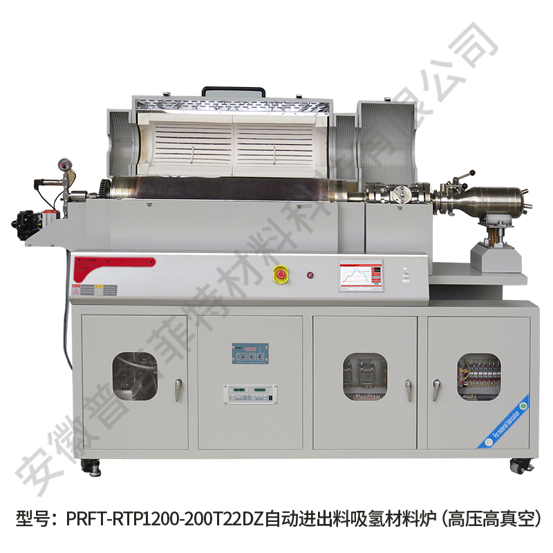 PRFT-RTP1200-200T22DZ自动进出料吸氢材料烧结炉 主要为吸氢材料在无氧及高压高真空条件下通过高温烧结完成吸氢要求而设计;