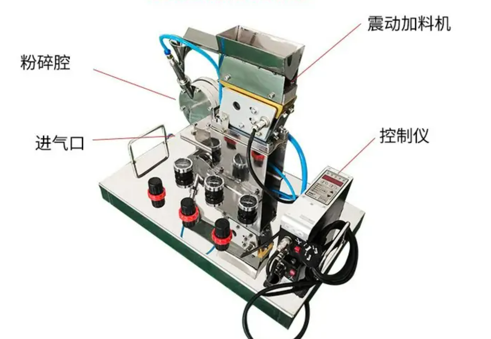 气流磨腔体材质 | 腔体外壳:SS304 腔体内衬:氧化铝(可定制氧化锆) |