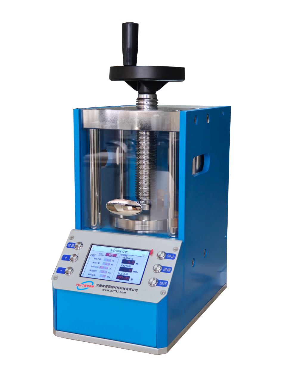 产品特点 | 带有自动恒压功能,低于设定压力0.2T自动补压 可设置模具尺寸大小,精准显示对应实际压力 精准换算,可同时显示实际压力及压强单位的数据 尺寸小巧,噪音小,共振小,可放入手套箱内操作 |