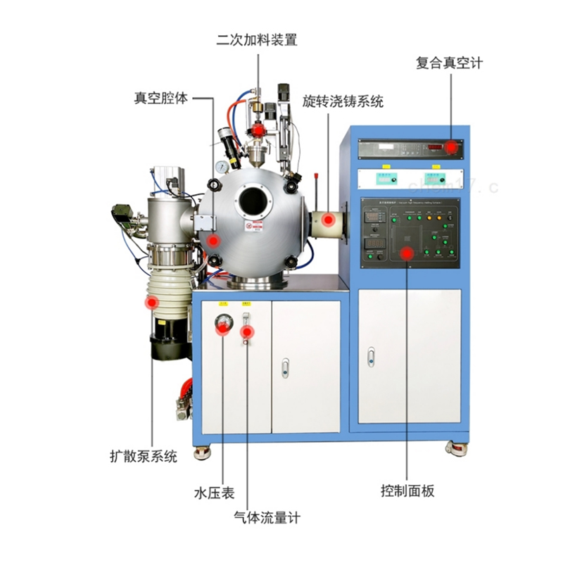 二次加料装置 | 带有二次加料装置,可在熔炼过程中加料(这真空或惰性气体保护状态下) |